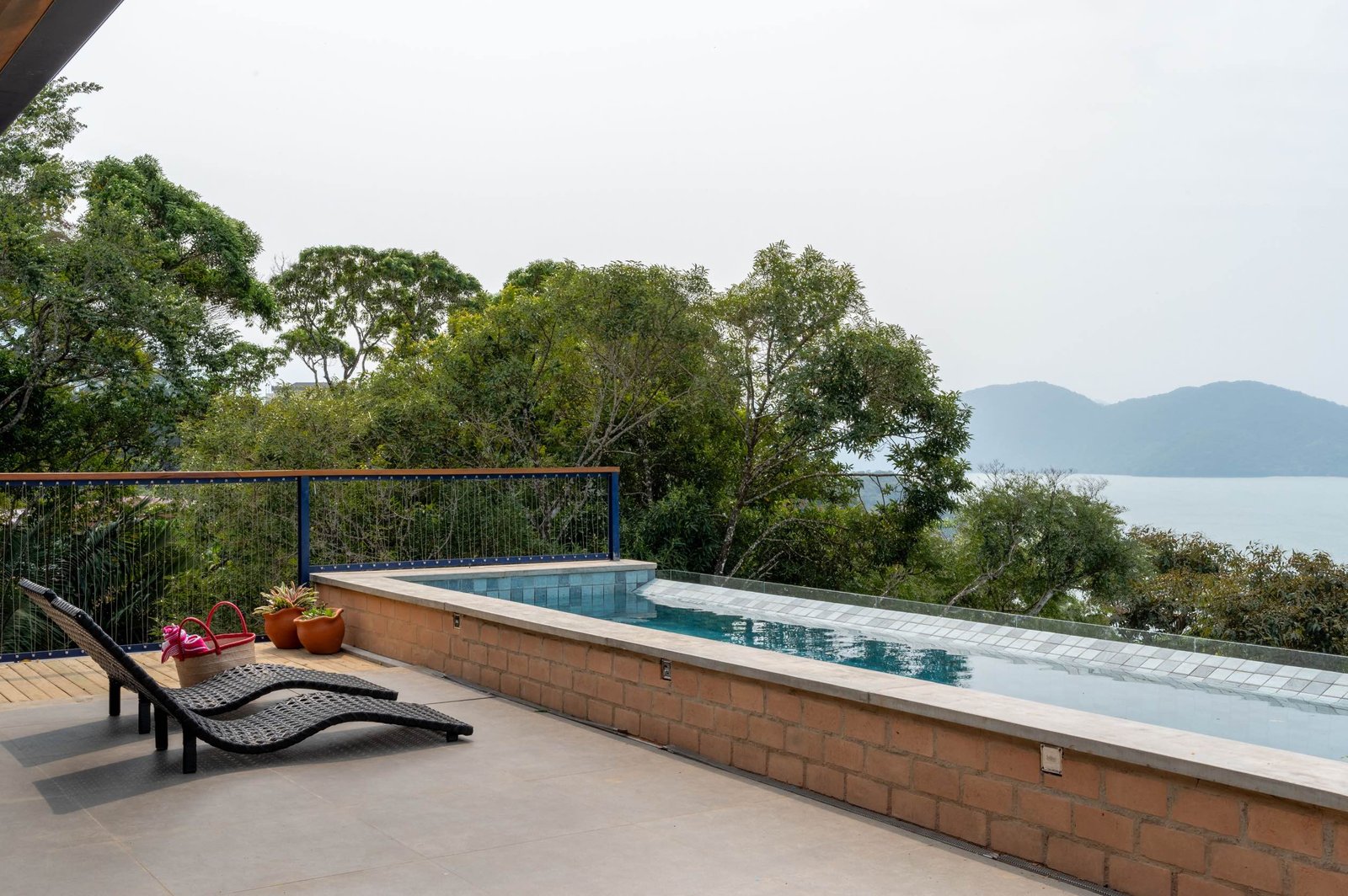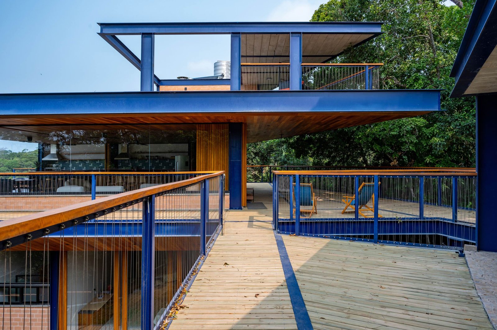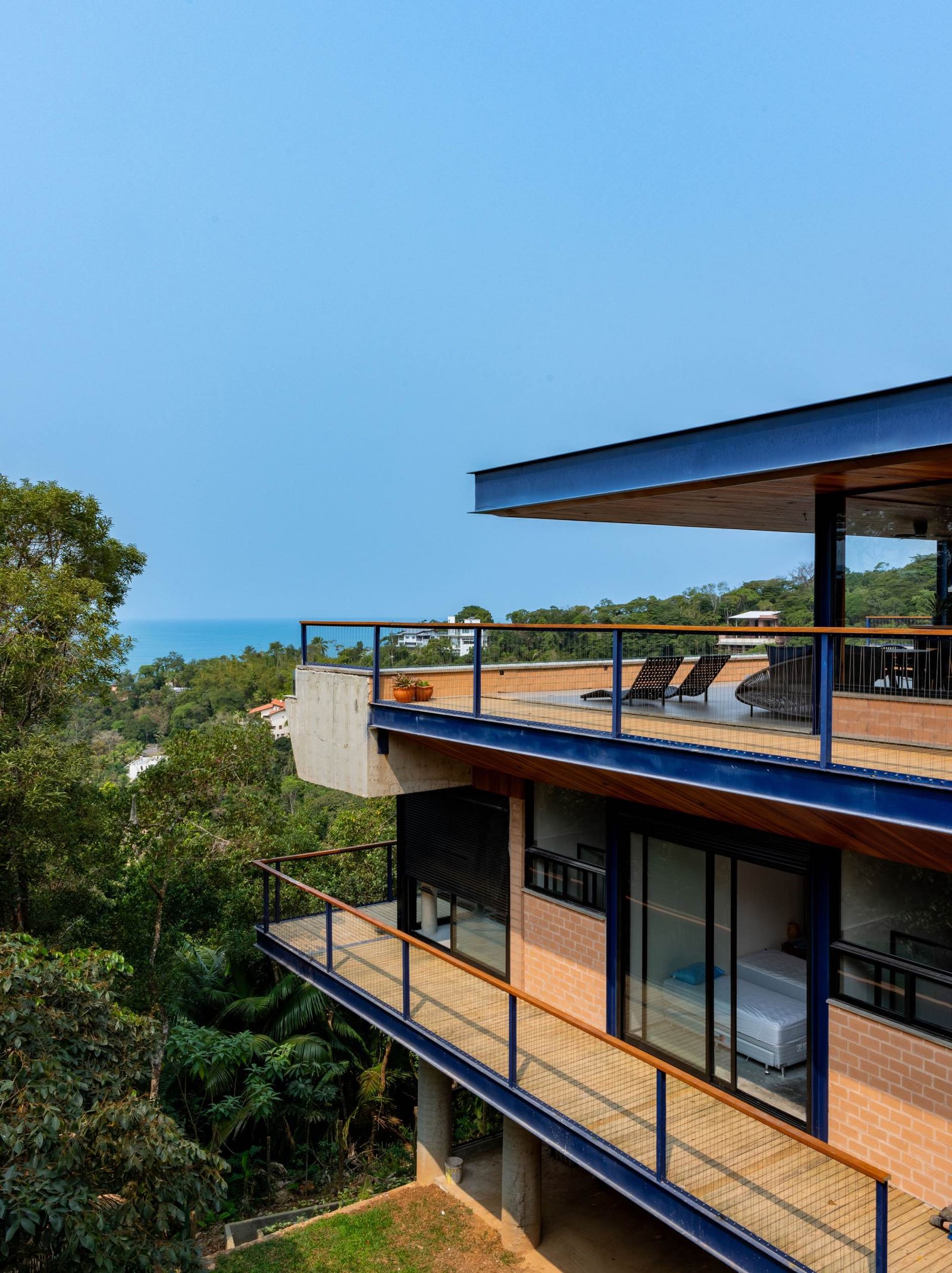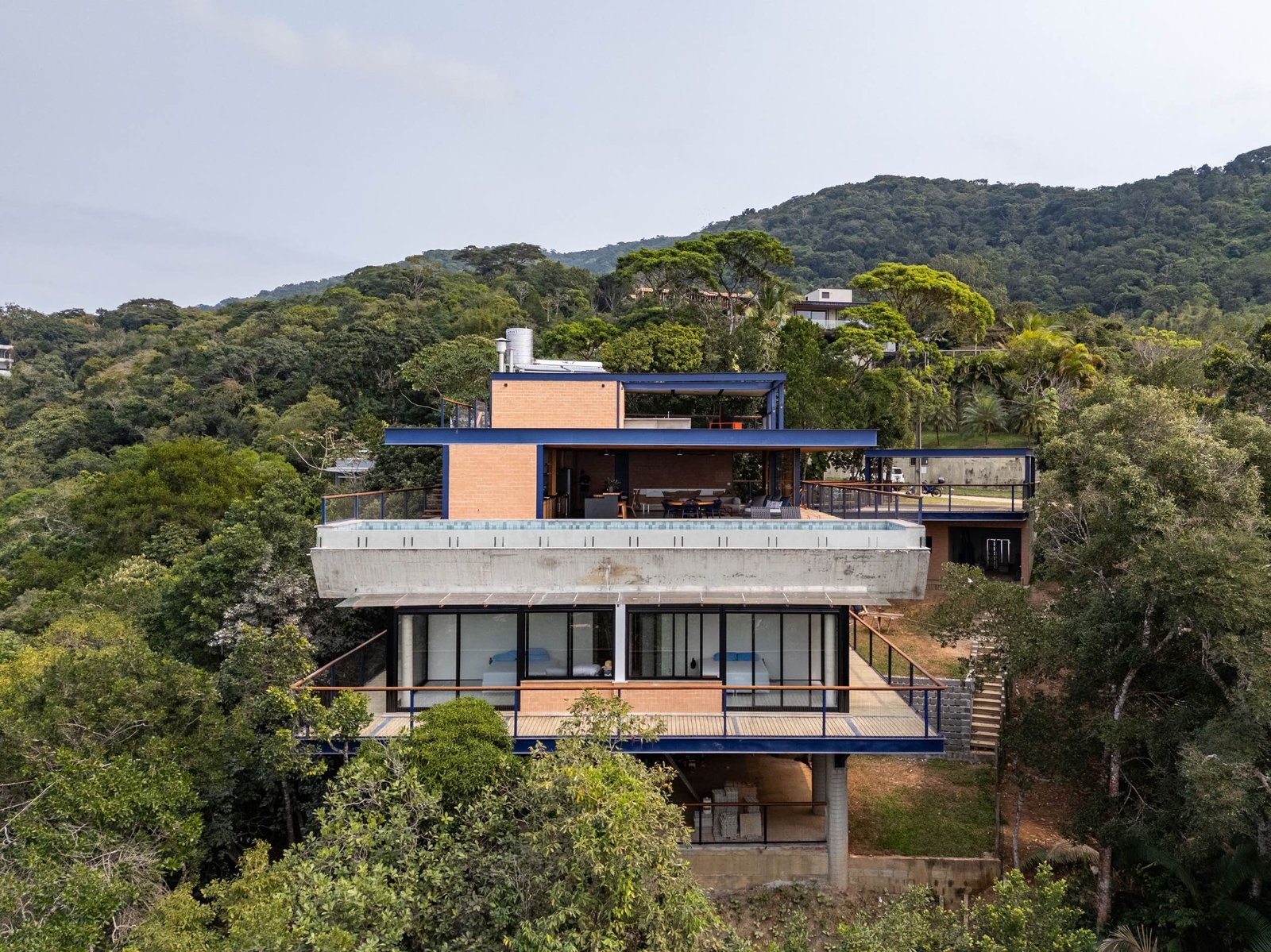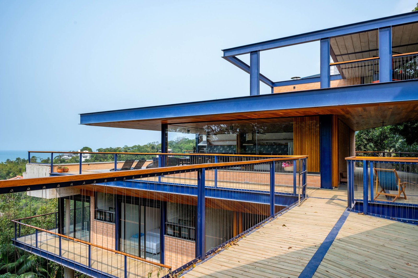 Situada à beira-mar, esta casa sobre pilotis foi projetada para integrar a natureza ao seu redor. Com estrutura metálica azul, em harmonia com o mar, e elevada sobre pilotis, a casa permite que a vegetação local cresça livremente. O pavimento inferior abriga a área íntima, enquanto o térreo é dedicado à área social, com uma piscina de borda infinita que se funde com o horizonte, e uma área gourmet perfeita para confraternizações. Na cobertura, um pequeno espaço gourmet oferece vistas panorâmicas. O deck ao redor da casa amplia a conexão com a paisagem e proporciona um ambiente ideal para relaxar. Cada ambiente foi pensado para proporcionar conforto e harmonia com o entorno, tornando esta residência o refúgio perfeito para quem busca viver em sintonia com a natureza e desfrutar de vistas deslumbrantes.