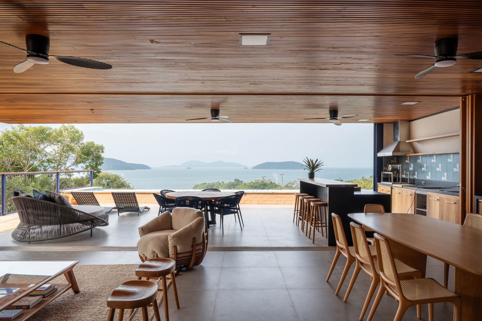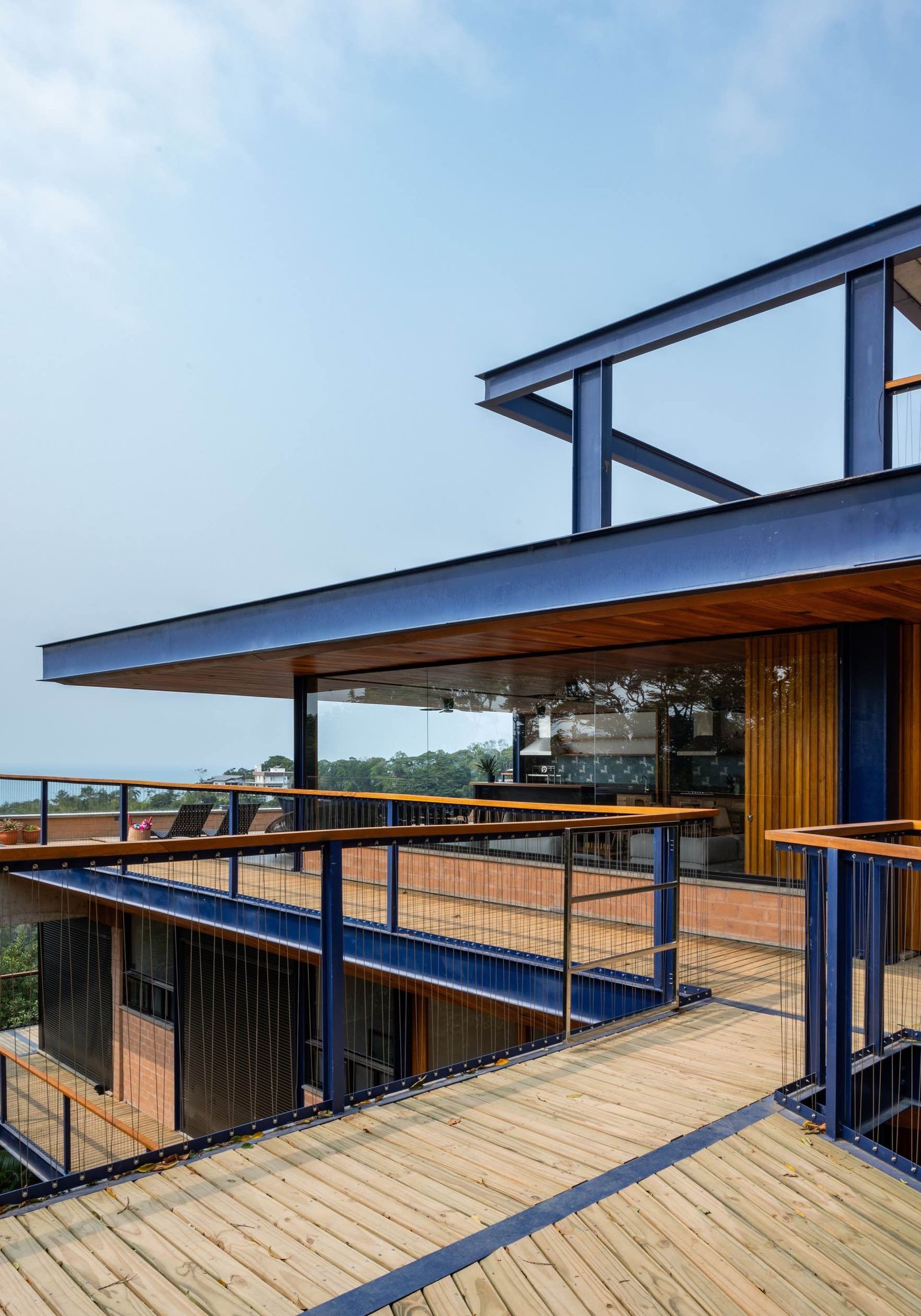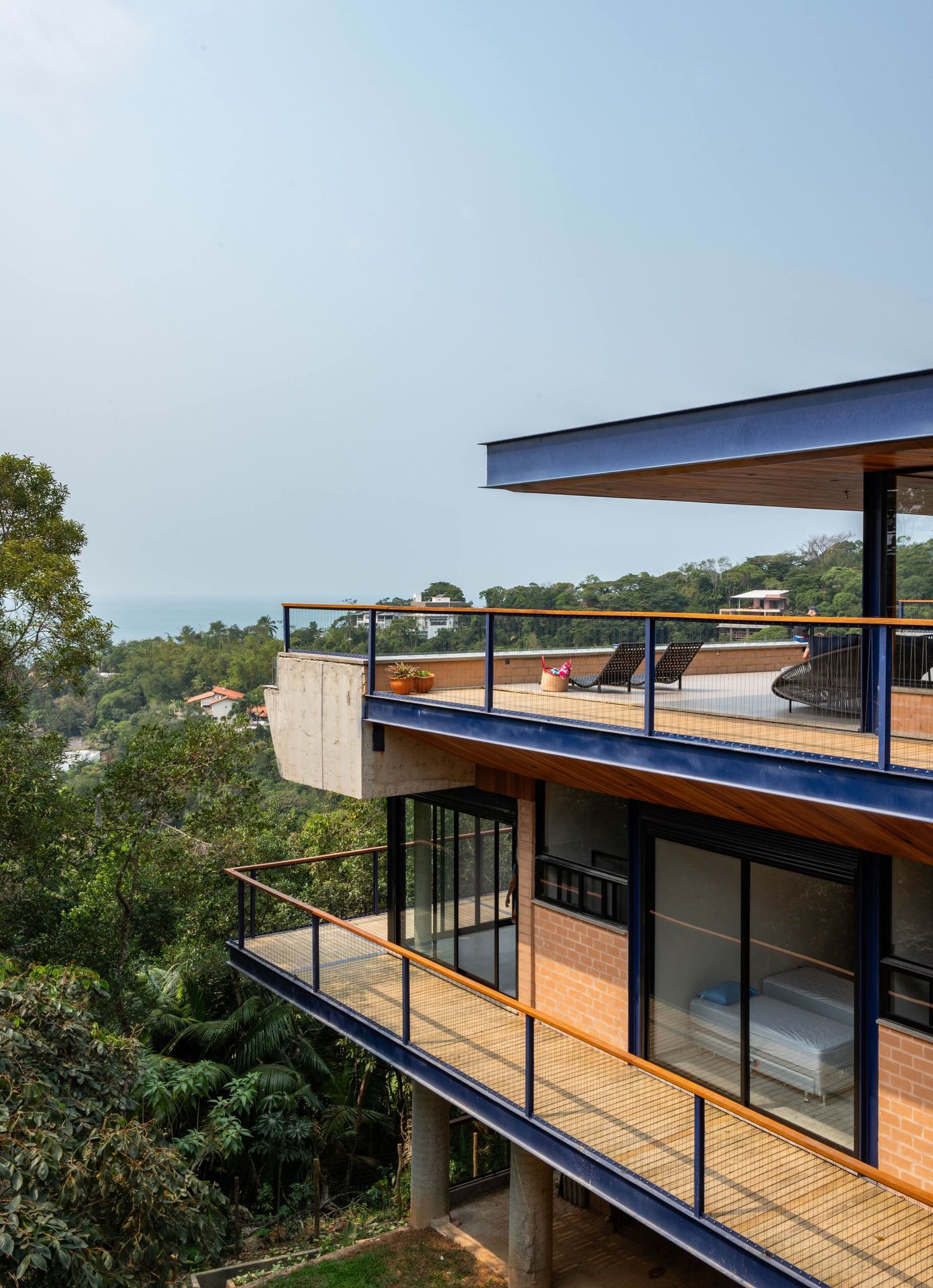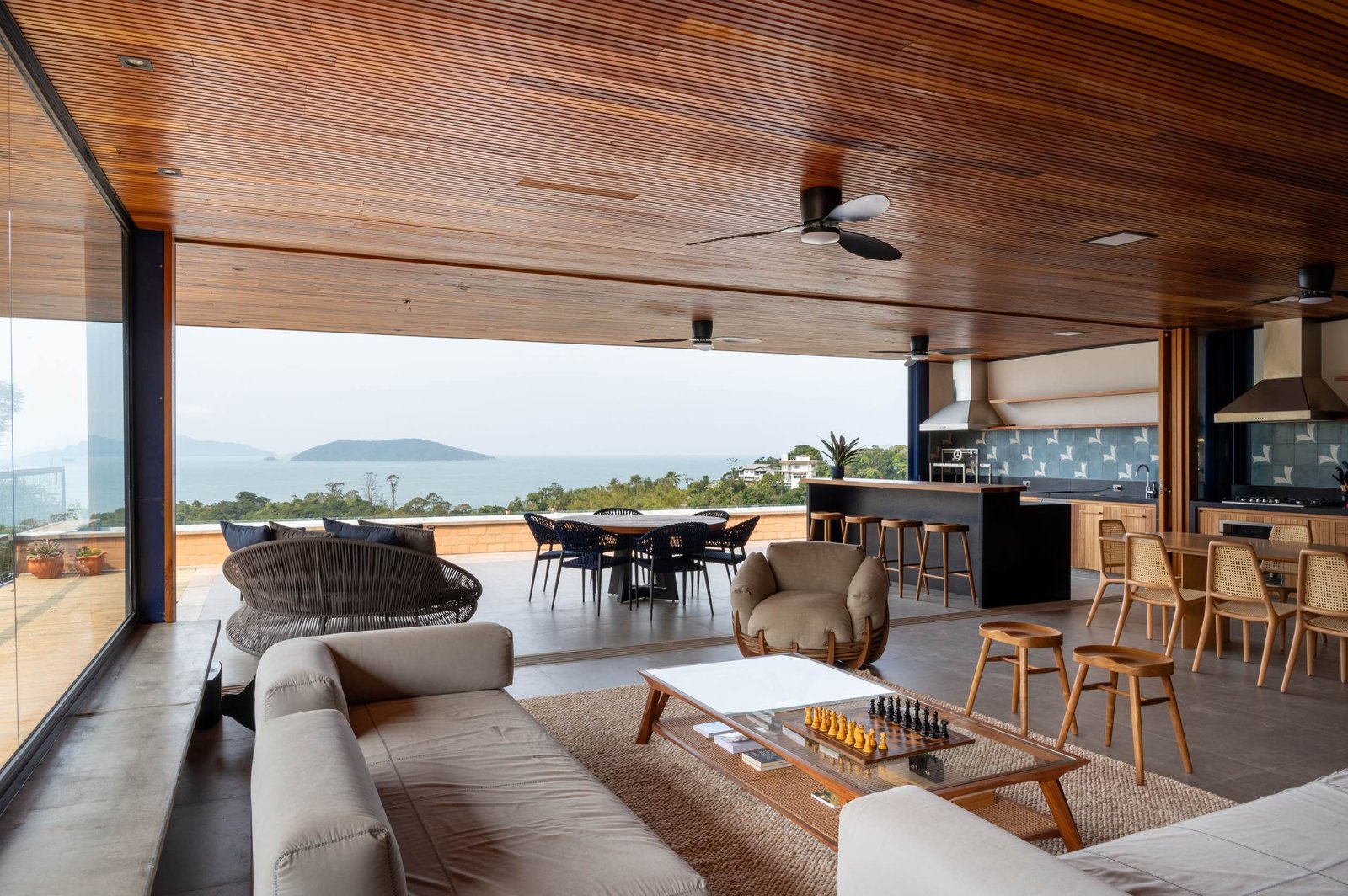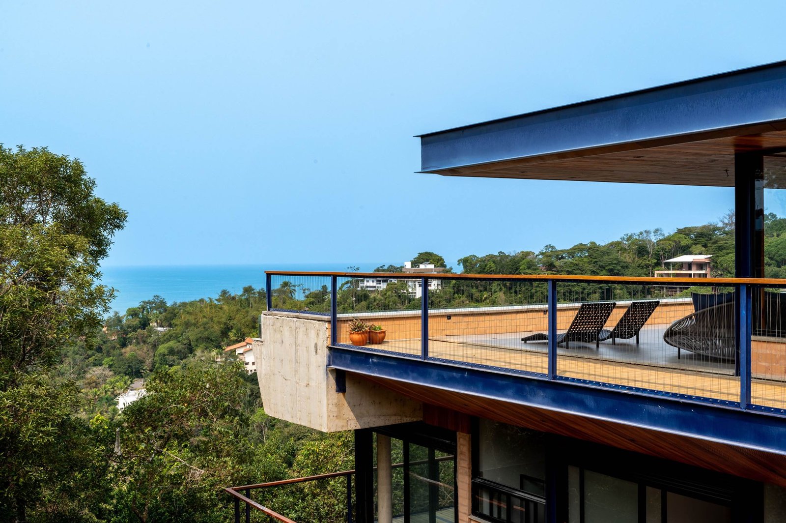 Situada à beira-mar, esta casa sobre pilotis foi projetada para integrar a natureza ao seu redor. Com estrutura metálica azul, em harmonia com o mar, e elevada sobre pilotis, a casa permite que a vegetação local cresça livremente. O pavimento inferior abriga a área íntima, enquanto o térreo é dedicado à área social, com uma piscina de borda infinita que se funde com o horizonte, e uma área gourmet perfeita para confraternizações. Na cobertura, um pequeno espaço gourmet oferece vistas panorâmicas. O deck ao redor da casa amplia a conexão com a paisagem e proporciona um ambiente ideal para relaxar. Cada ambiente foi pensado para proporcionar conforto e harmonia com o entorno, tornando esta residência o refúgio perfeito para quem busca viver em sintonia com a natureza e desfrutar de vistas deslumbrantes.