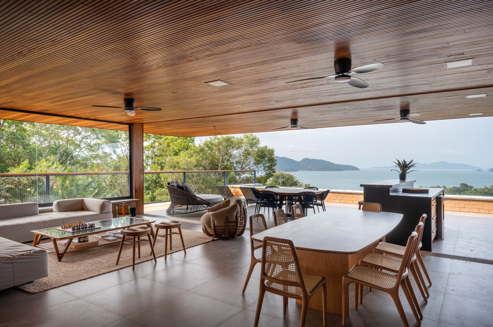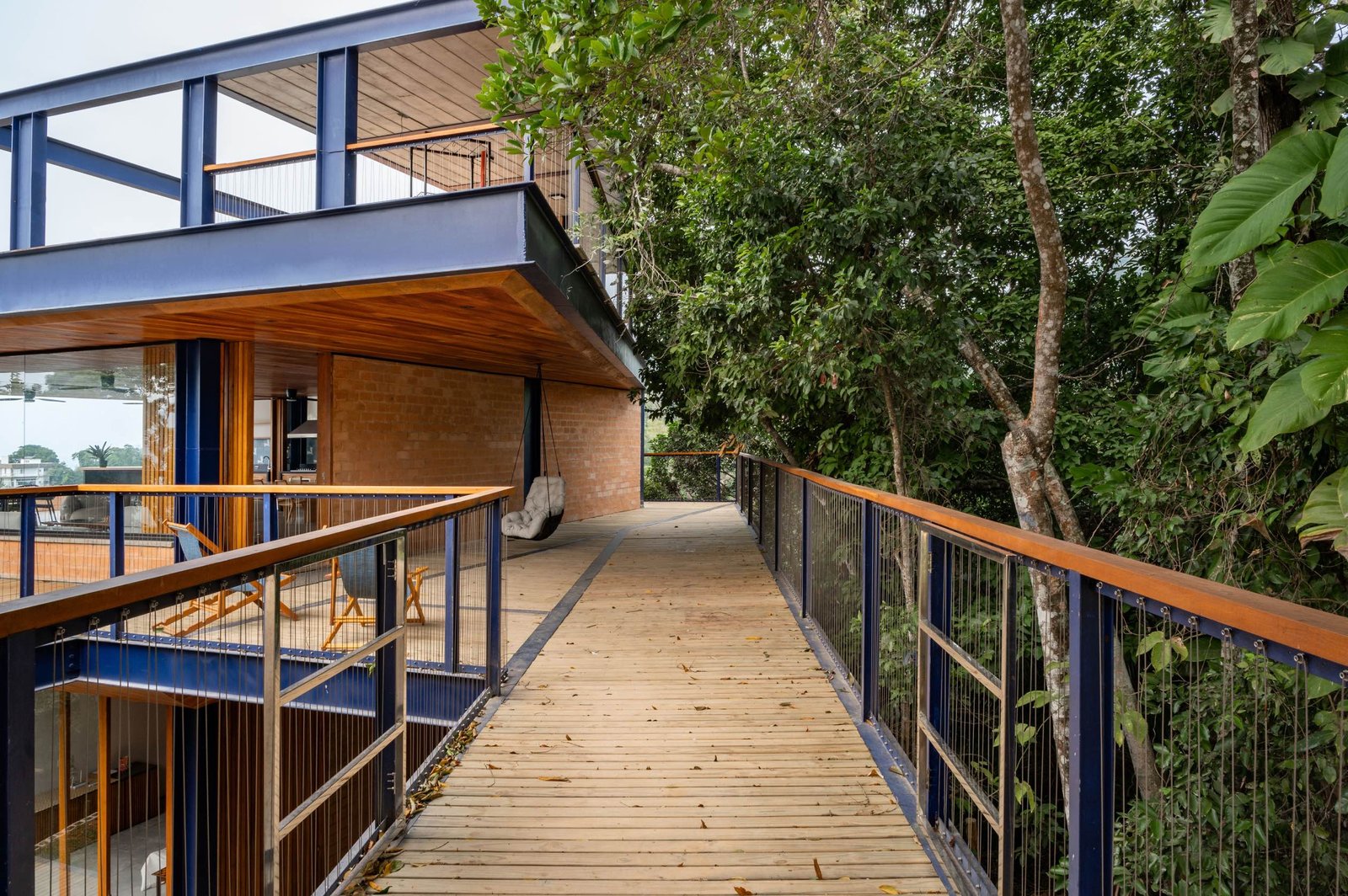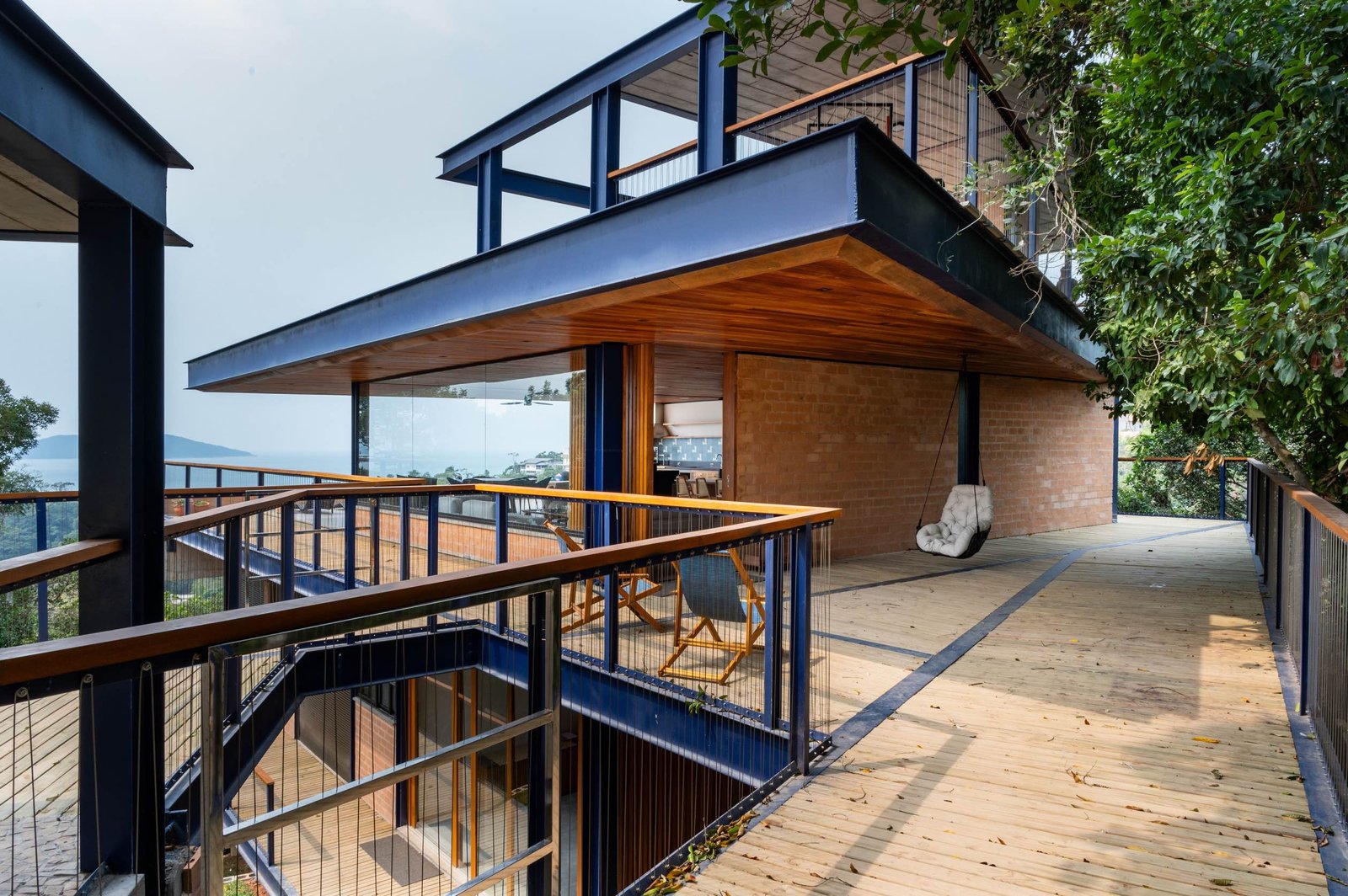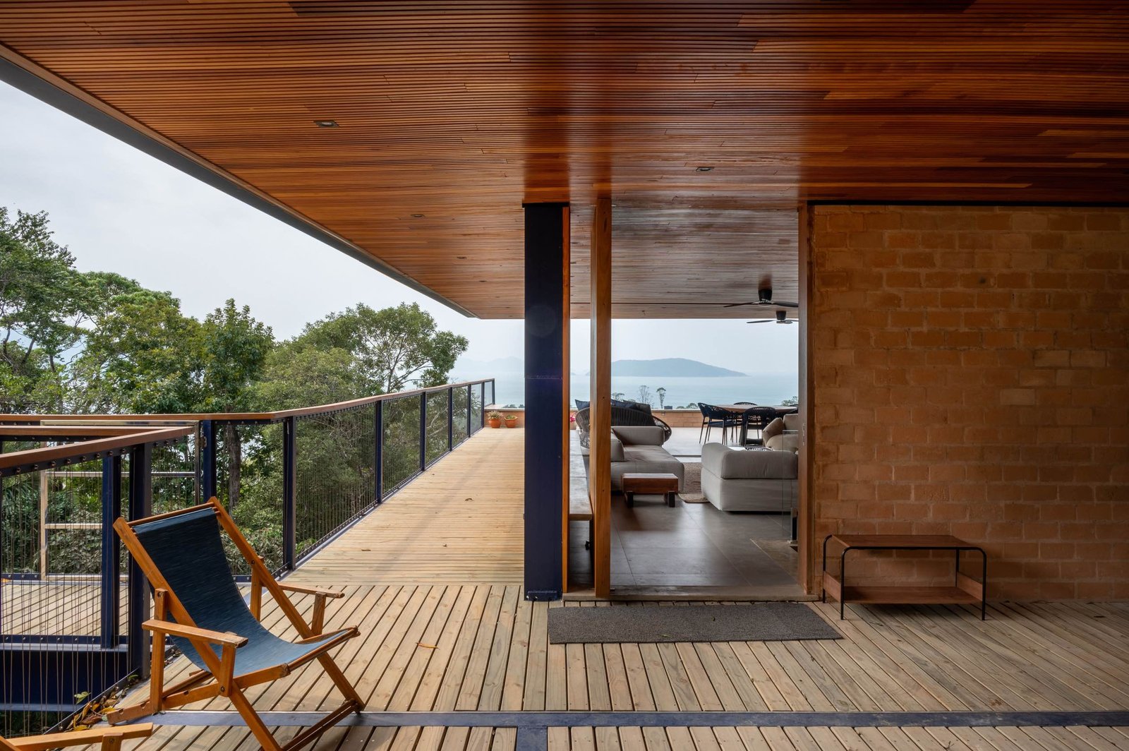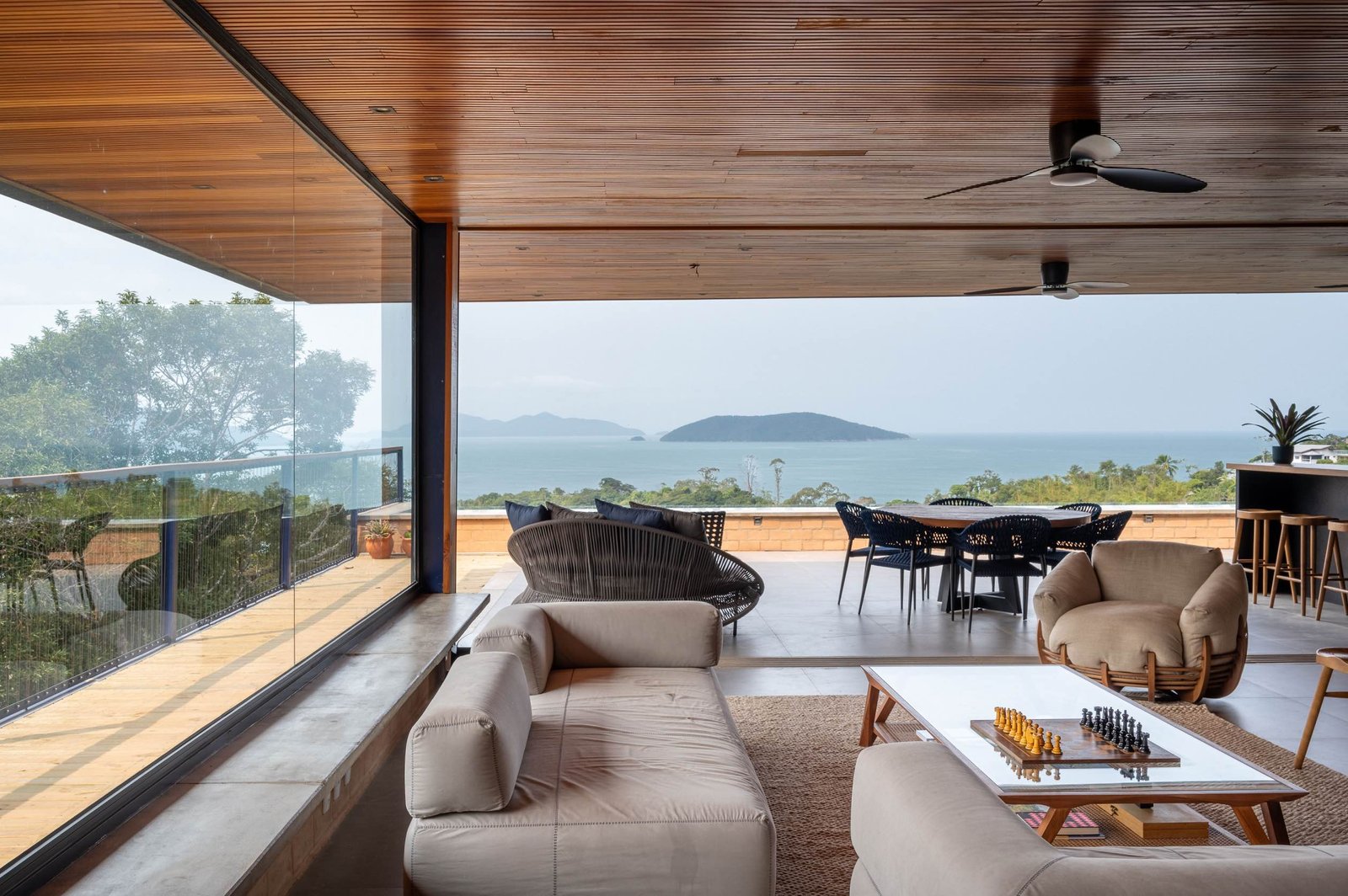 Situada à beira-mar, esta casa sobre pilotis foi projetada para integrar a natureza ao seu redor. Com estrutura metálica azul, em harmonia com o mar, e elevada sobre pilotis, a casa permite que a vegetação local cresça livremente. O pavimento inferior abriga a área íntima, enquanto o térreo é dedicado à área social, com uma piscina de borda infinita que se funde com o horizonte, e uma área gourmet perfeita para confraternizações. Na cobertura, um pequeno espaço gourmet oferece vistas panorâmicas. O deck ao redor da casa amplia a conexão com a paisagem e proporciona um ambiente ideal para relaxar. Cada ambiente foi pensado para proporcionar conforto e harmonia com o entorno, tornando esta residência o refúgio perfeito para quem busca viver em sintonia com a natureza e desfrutar de vistas deslumbrantes.