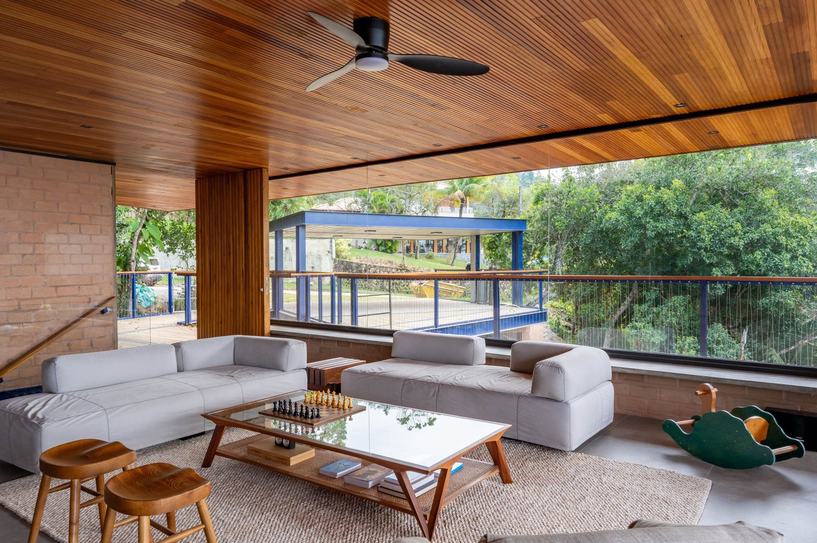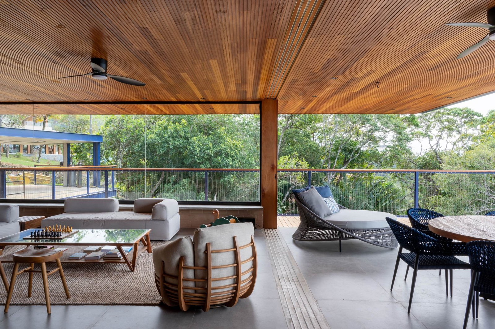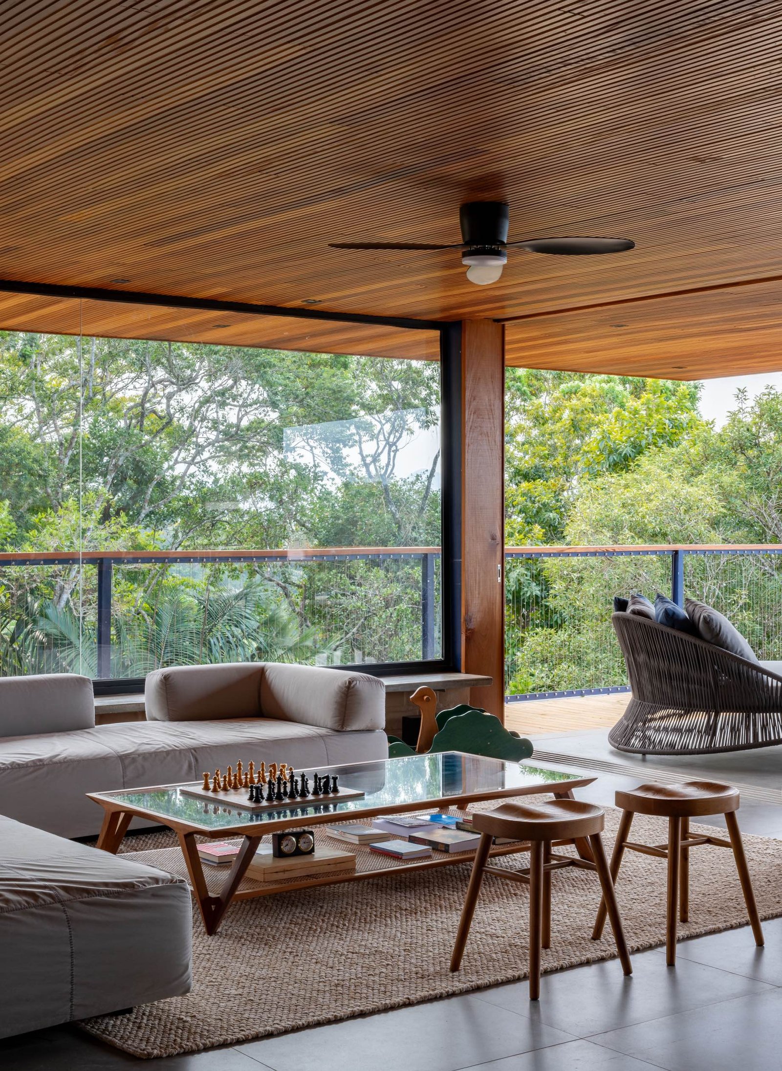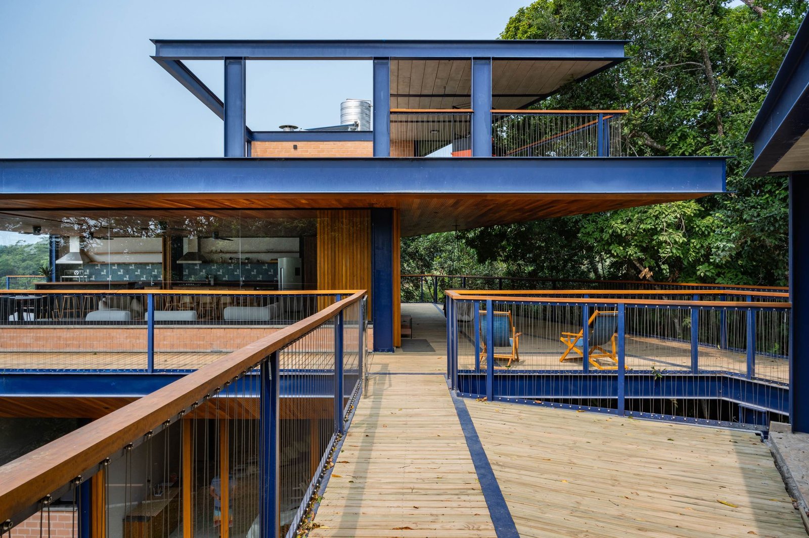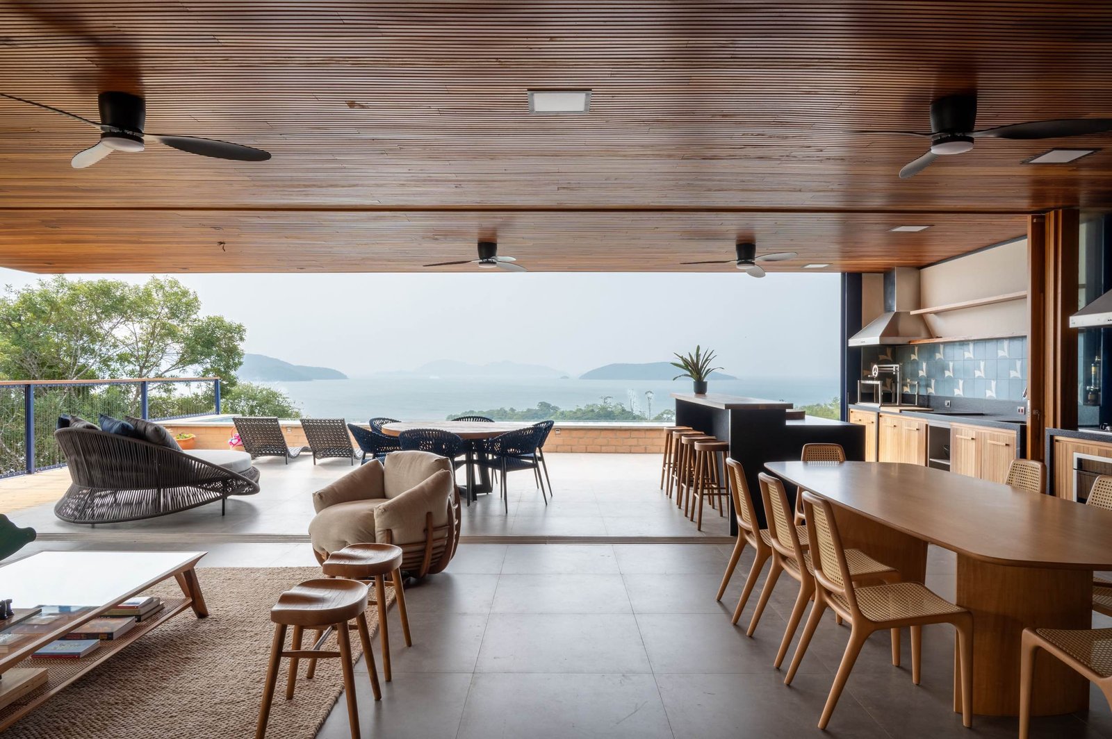 Situada à beira-mar, esta casa sobre pilotis foi projetada para integrar a natureza ao seu redor. Com estrutura metálica azul, em harmonia com o mar, e elevada sobre pilotis, a casa permite que a vegetação local cresça livremente. O pavimento inferior abriga a área íntima, enquanto o térreo é dedicado à área social, com uma piscina de borda infinita que se funde com o horizonte, e uma área gourmet perfeita para confraternizações. Na cobertura, um pequeno espaço gourmet oferece vistas panorâmicas. O deck ao redor da casa amplia a conexão com a paisagem e proporciona um ambiente ideal para relaxar. Cada ambiente foi pensado para proporcionar conforto e harmonia com o entorno, tornando esta residência o refúgio perfeito para quem busca viver em sintonia com a natureza e desfrutar de vistas deslumbrantes.