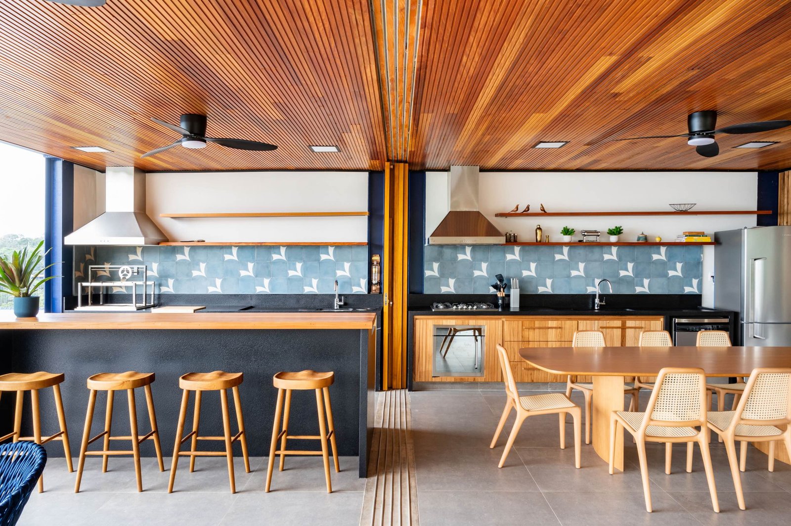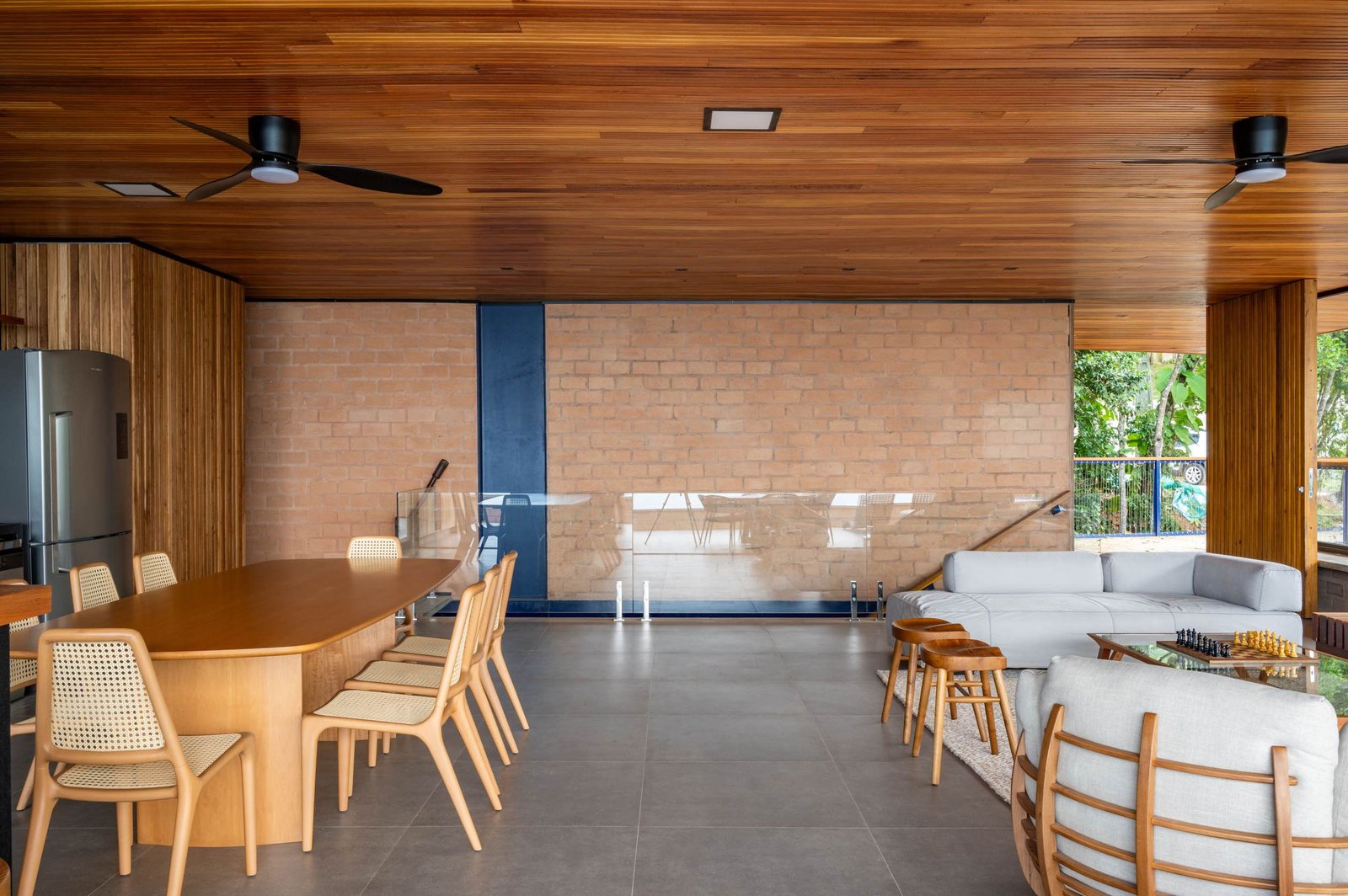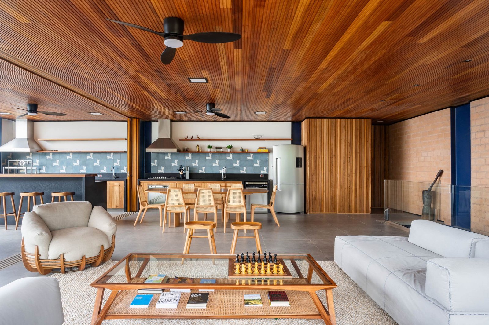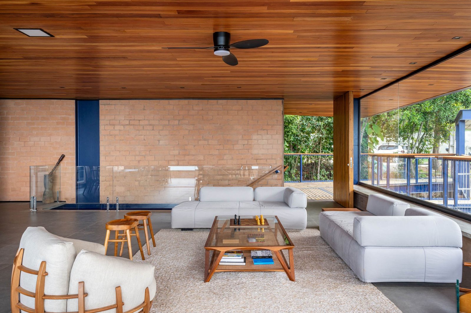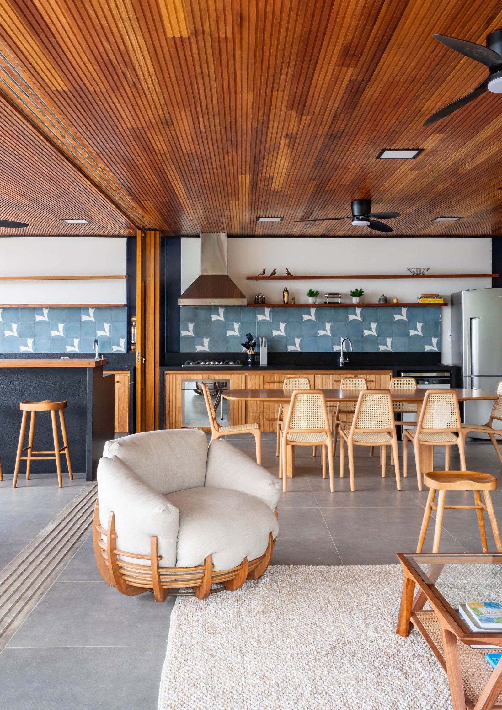 Situada à beira-mar, esta casa sobre pilotis foi projetada para integrar a natureza ao seu redor. Com estrutura metálica azul, em harmonia com o mar, e elevada sobre pilotis, a casa permite que a vegetação local cresça livremente. O pavimento inferior abriga a área íntima, enquanto o térreo é dedicado à área social, com uma piscina de borda infinita que se funde com o horizonte, e uma área gourmet perfeita para confraternizações. Na cobertura, um pequeno espaço gourmet oferece vistas panorâmicas. O deck ao redor da casa amplia a conexão com a paisagem e proporciona um ambiente ideal para relaxar. Cada ambiente foi pensado para proporcionar conforto e harmonia com o entorno, tornando esta residência o refúgio perfeito para quem busca viver em sintonia com a natureza e desfrutar de vistas deslumbrantes.