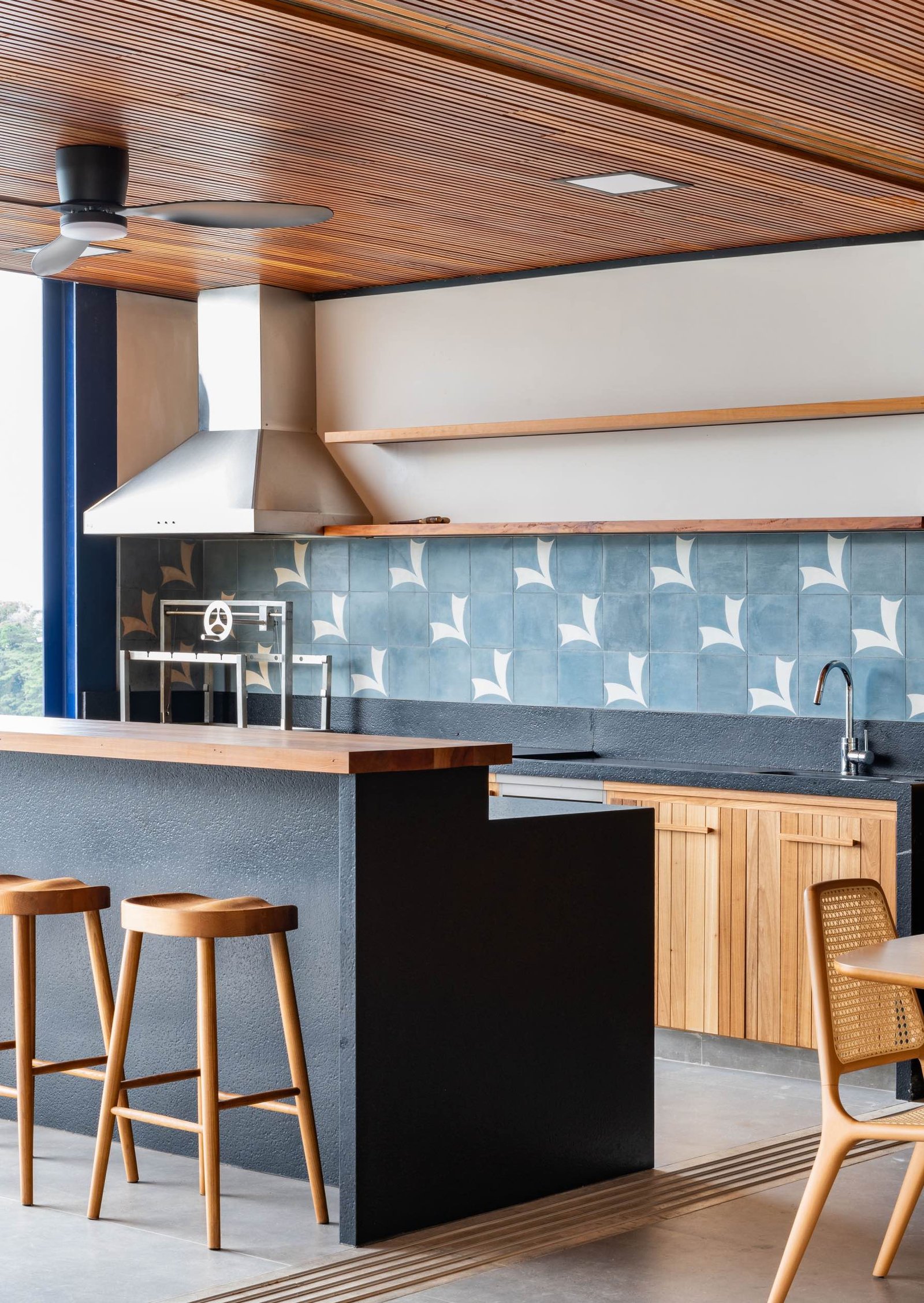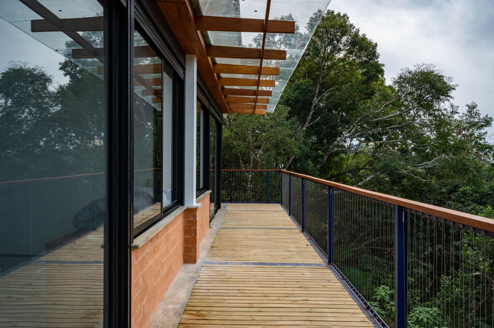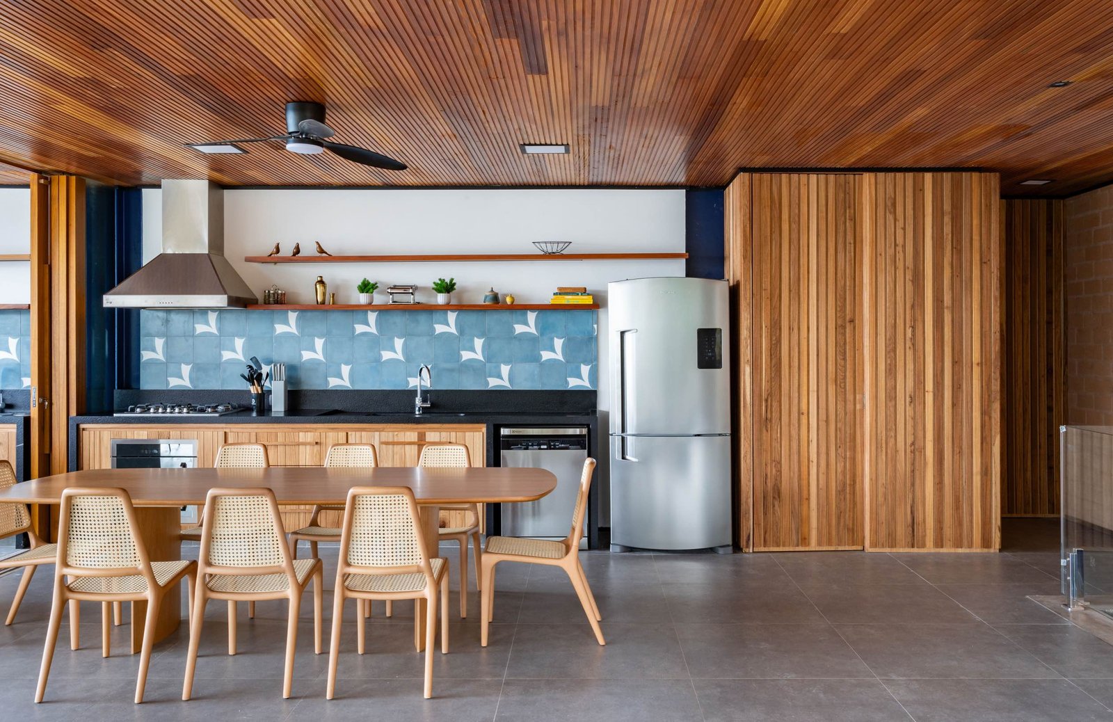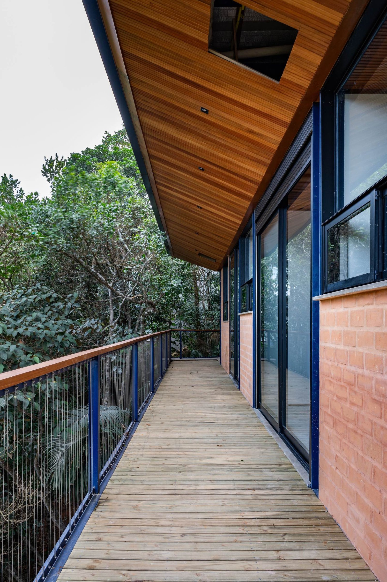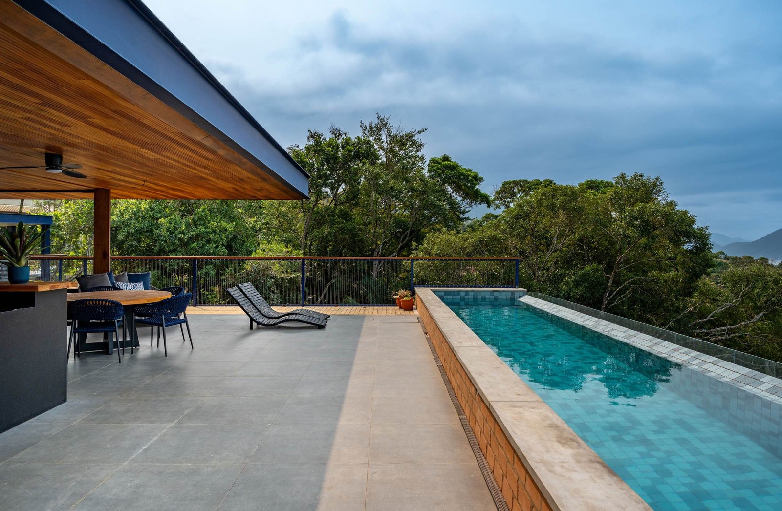 Situada à beira-mar, esta casa sobre pilotis foi projetada para integrar a natureza ao seu redor. Com estrutura metálica azul, em harmonia com o mar, e elevada sobre pilotis, a casa permite que a vegetação local cresça livremente. O pavimento inferior abriga a área íntima, enquanto o térreo é dedicado à área social, com uma piscina de borda infinita que se funde com o horizonte, e uma área gourmet perfeita para confraternizações. Na cobertura, um pequeno espaço gourmet oferece vistas panorâmicas. O deck ao redor da casa amplia a conexão com a paisagem e proporciona um ambiente ideal para relaxar. Cada ambiente foi pensado para proporcionar conforto e harmonia com o entorno, tornando esta residência o refúgio perfeito para quem busca viver em sintonia com a natureza e desfrutar de vistas deslumbrantes.