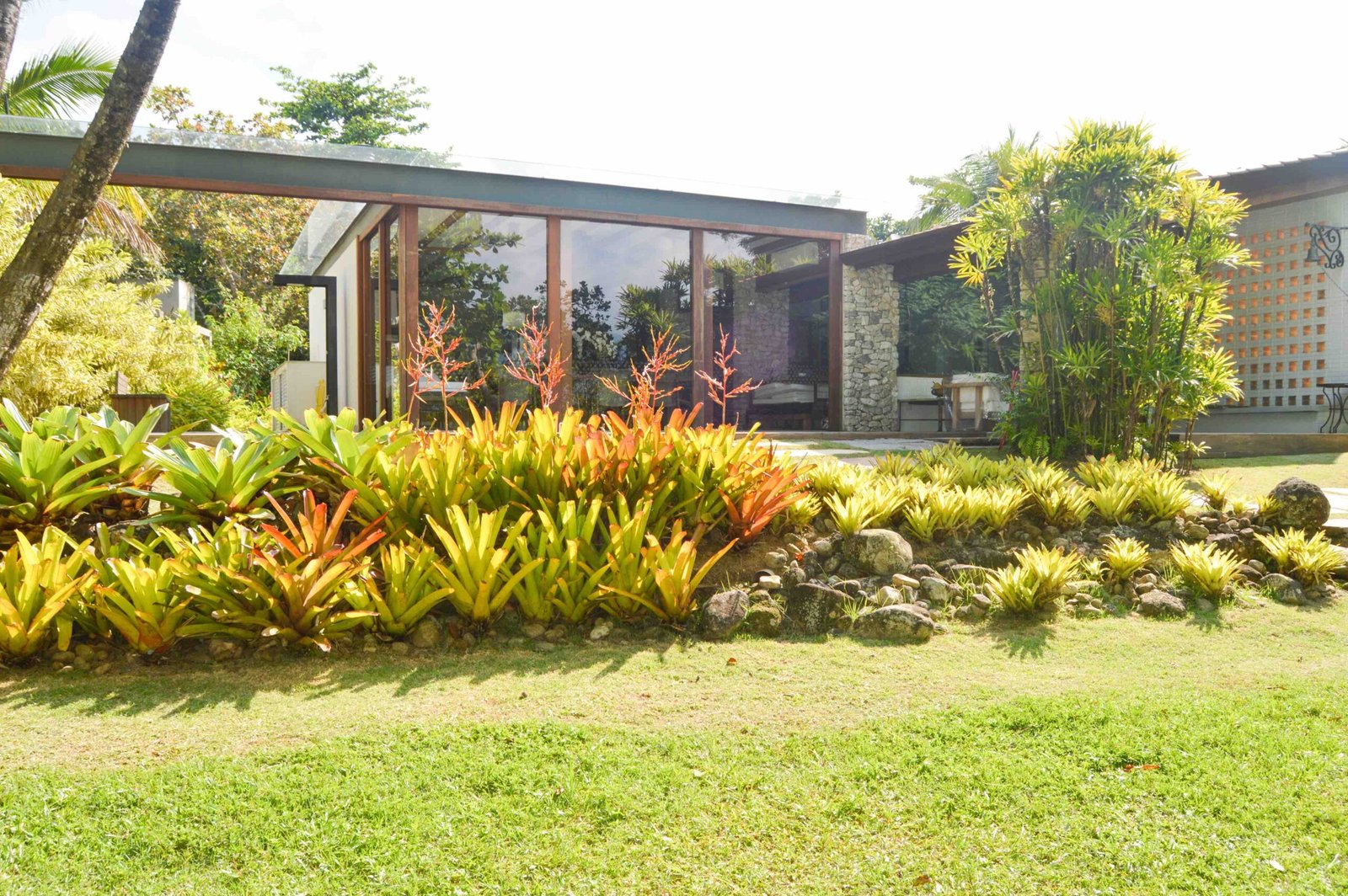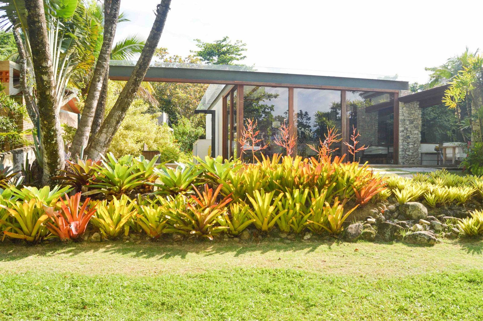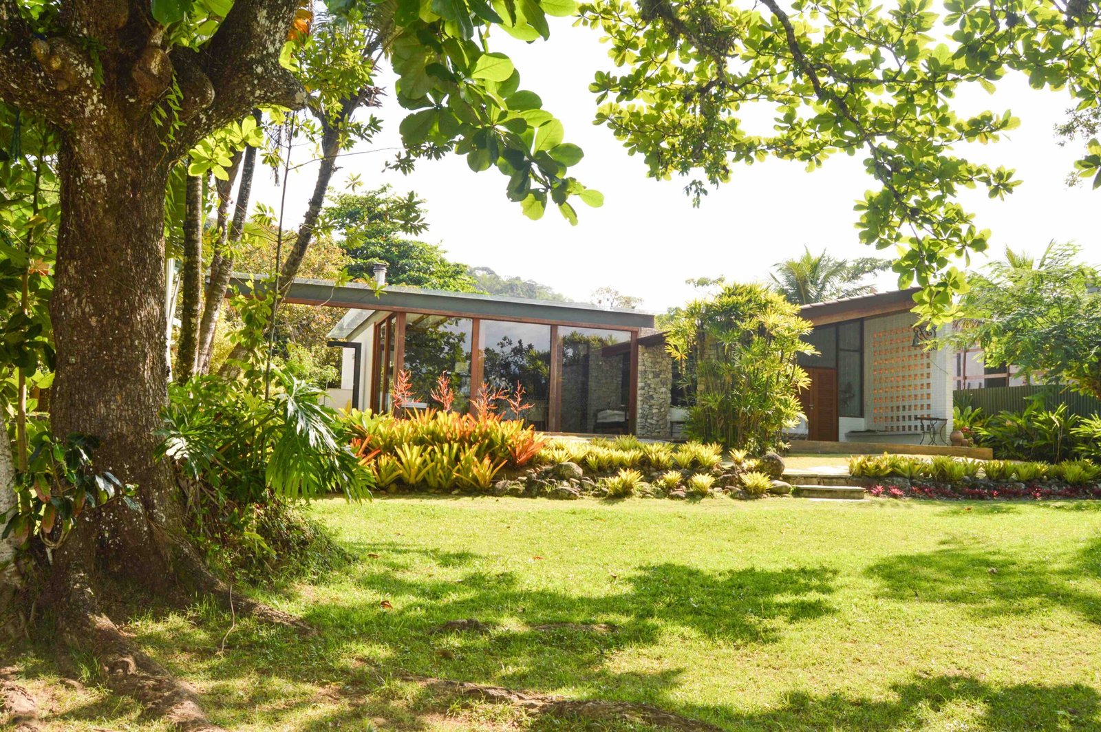 Esta casa pé na areia é um verdadeiro refúgio à beira-mar, projetada para integrar o interior com a natureza ao redor. O paisagismo na frente da casa é cuidadosamente planejado, com plantas que se harmonizam com o ambiente praiano, criando um espaço acolhedor e relaxante. As portas amplas de vidro e madeira são um destaque, permitindo que, quando totalmente abertas, a casa se entregue completamente à vista deslumbrante da praia, criando uma sensação de continuidade entre o interior e o exterior.