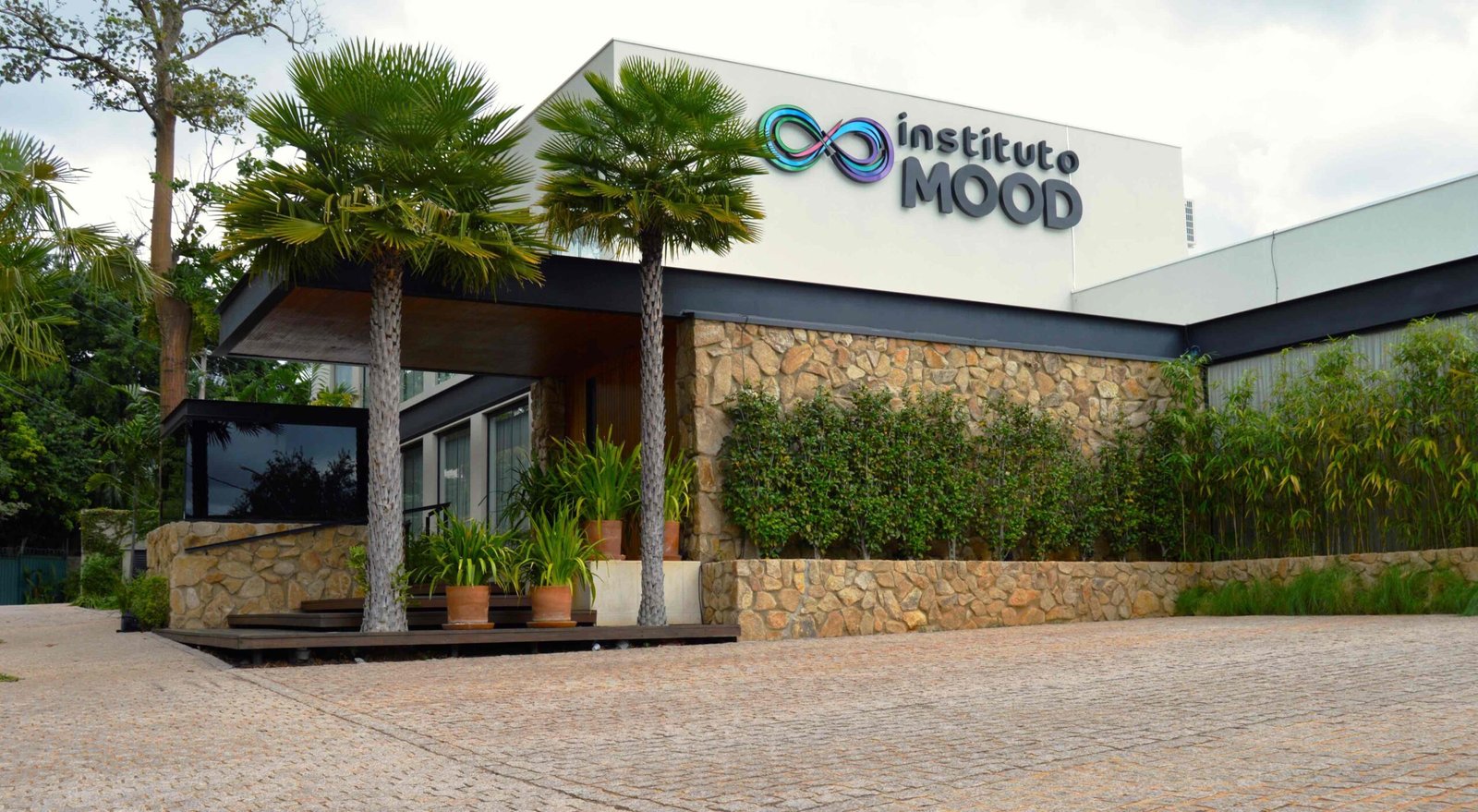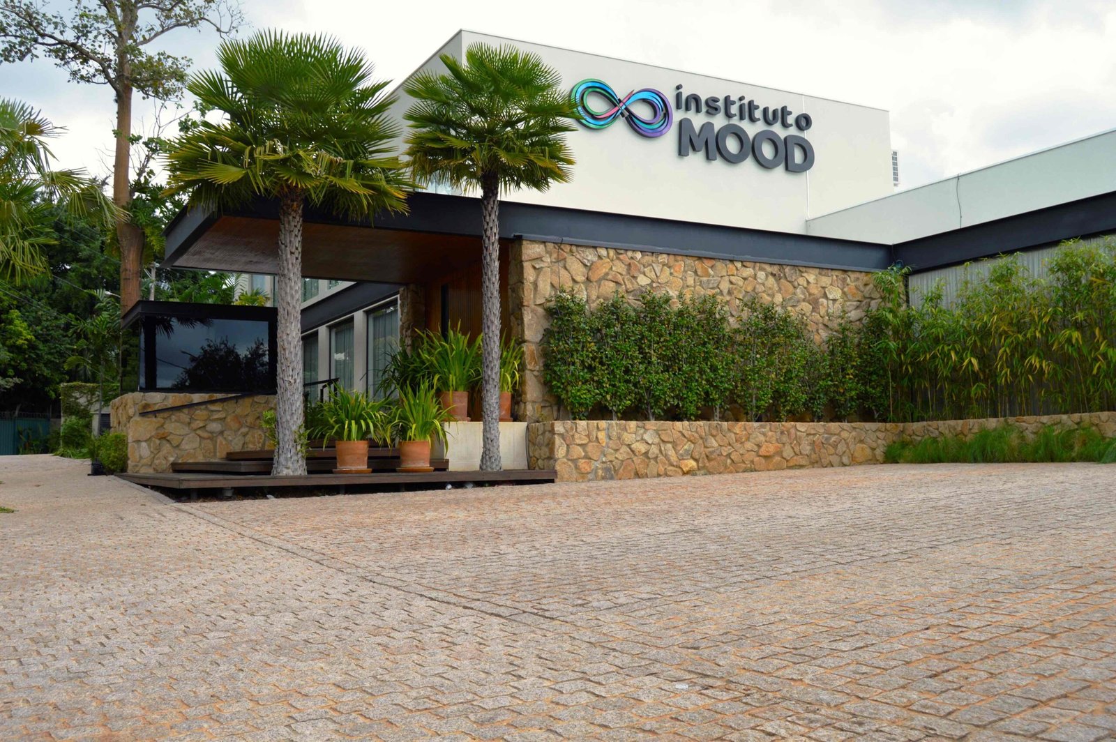 O Instituto Mood é um espaço que combina design contemporâneo e elementos naturais, criando um ambiente sofisticado e acolhedor. Sua fachada é marcada por uma estrutura metálica que confere modernidade à construção, enquanto o forro de madeira traz um toque de aconchego e harmonia com o ambiente. A parede de pedra, robusta e natural, adiciona textura e caráter à fachada, criando um contraste interessante com os materiais mais leves.